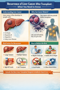 In this guide, we’ll explain why liver cancer may recur, how common it is, warning signs, and what patients can do to reduce the risk. We’ll also discuss why choosing the best liver transplant surgeon in India can make a major difference in long-term outcomes.